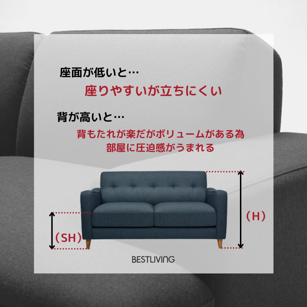 背 ―高いと背もたれが楽だがボリュームがあるため部屋に圧迫感が生まれる