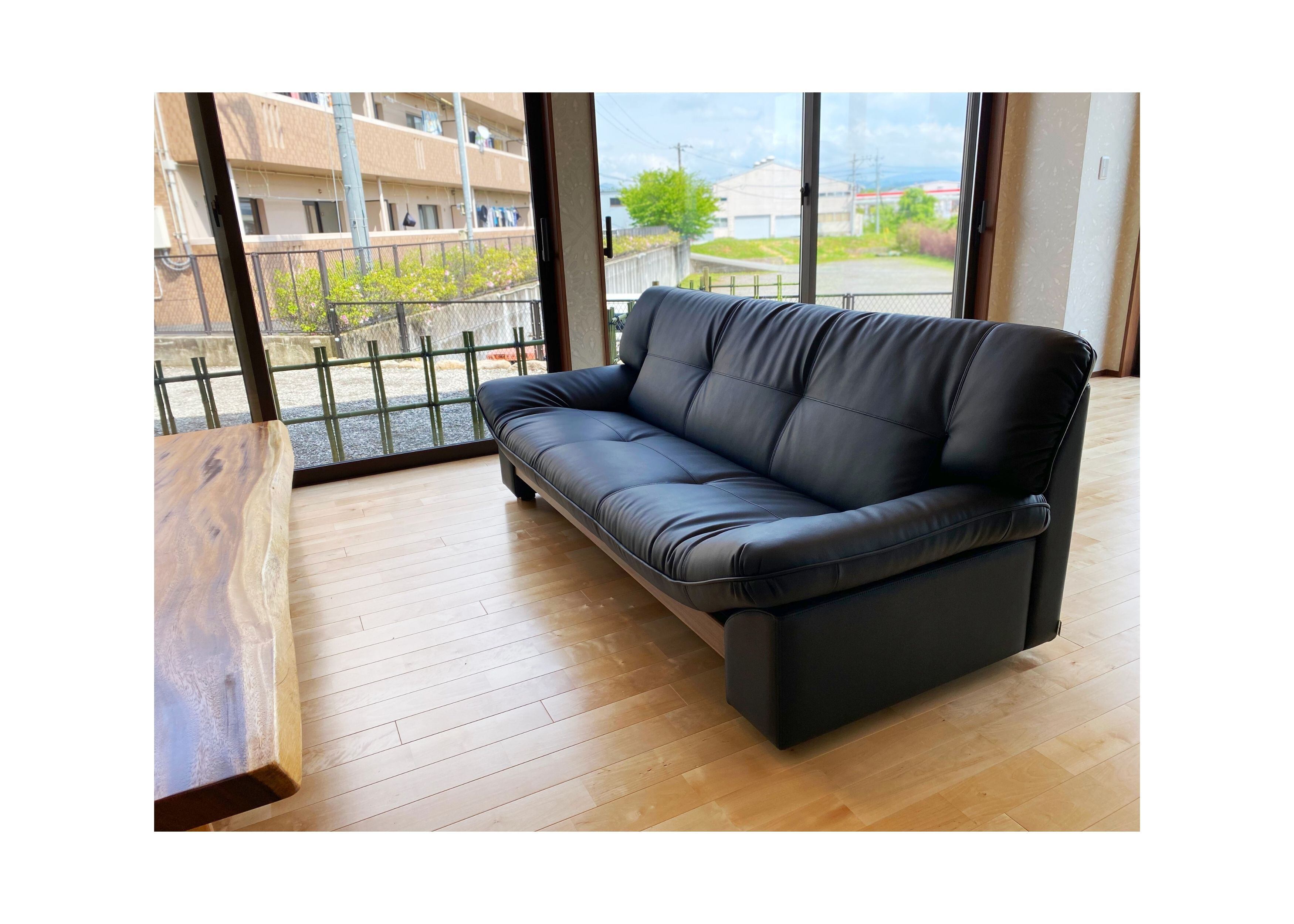 「EASE」シリーズは、肩までホールドしてくれるハイグレードなハイバックソファ。ソファフレーム(木枠構造)に九州産の杉と檜を使用し、張地にはさらりとした肌触りをもつ日本製合成皮革エーデルスムースを使っています。